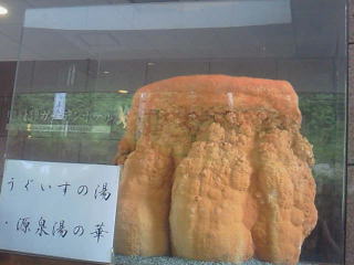 本物のブルートレインですが、マークが、飲んだくれのすっぽんになってたのが、おしろかったですねー。 入り口にあるウグイスの湯の湯の華の塊は凄いです。 かなりの効能が期待できますねー。 |