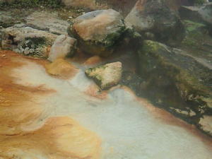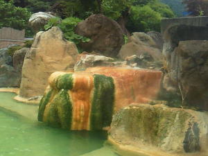 混浴じゃないゾーンも、露天が広く、岩風呂、桧風呂、寝湯、立ち湯があり、内湯も、サウナ、韓国風岩盤浴など、とに かくいっぱいあります。立ち湯が広いので、泳ぎましたよー。 後、うぐいすの湯は、飲めますよー。 泉質は、ナトリウムカルシウム炭酸水素塩塩化物泉です。 鉄分が多いので、茶色い湯の華になります。 匂いも鉄っぽいです。 |