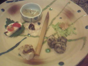 まずは、梅山ぶどう酒で始まりました。先付けは、どれもおいしかったです。