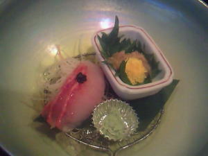 少ないから、アップで撮りました。めずらしいチョウザメの刺身は、タイのような触感でうまかったですねー。