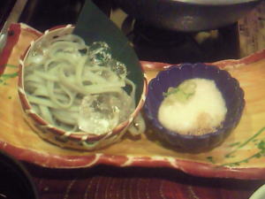 次は、ざるうどんです。とろろをそばに絡ませ、つけだれに付けて食べます。