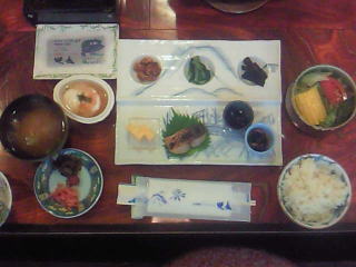 朝食は、豆腐のあんかけ、稚鮎の開きのほうばみそ焼きなど、なかなかの品数でした。